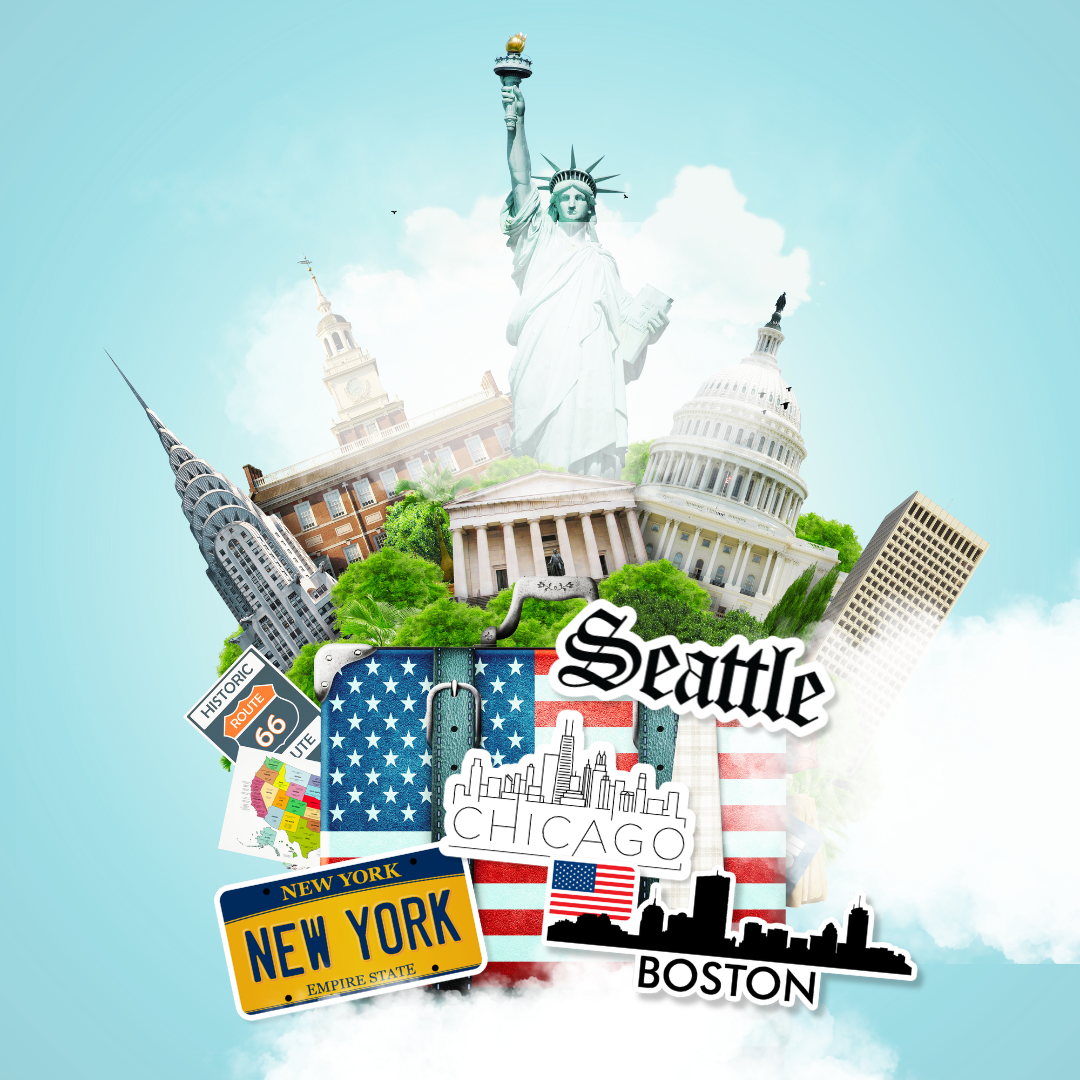 šŗšø American landmarks and most famous cities. New York, Chicago, Miami, Los Angeles, San Francisco, Boston, Orlando, Washington DC