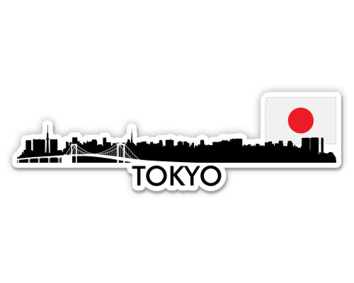 Tokyo Japan Skyline with Japanese Flag Sticker